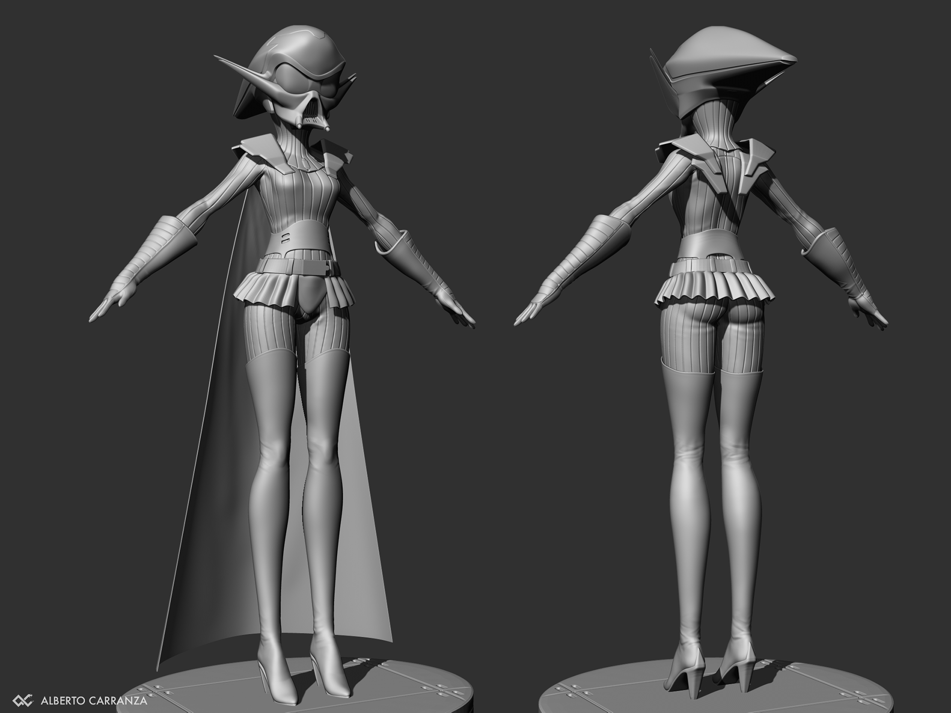 As my most recent 3D work has been previz assets for film, I wanted to focus on animation aesthetics. Based on the concept from Studio Trigger. I did take some liberties on the head as well as the gloves as I prefer Vaders Gloves in a New Hope/ Rogue One since they have a 70's motorbike racing aesthetic. Modeled in Zbrush. Textured in Substance Painter and Rendered in Unreal 5.2